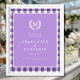 Purple Gingham Monogram Crest Wedding Welcome Poster