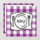 Very cute- Gingham table cloth with a placemat-fork and spoon. BBQ or barbecue invitation. The purple and white checkered gingham placemat is perfect for a family picnic,dinner or bbq. Personalize by clicking "Customize it". Great for graduation or 4th of July party! Available on other colors! Go to: www.zazzle.com/hungaricanprincess* and click on my "Invitation" department. Add matching stickers! Perfect to put on eating utensils wrapped with a napkin or as a invitation envelope seal.