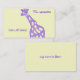 Cute purple giraffe designed for kids ! Add your own text to get your unique card . Great as a "call my mom card" . Leave one with the teacher , put one into the schoolbag , one into the pocket !Kids can get lost . Protect them !