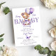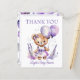 Beary cute girl teddy bear purple lavender balloons baby shower thank you card, watercolor teddy bear wearing a dress and a hair bow with purple balloons purple teddy bear girls baby shower thank you card