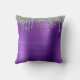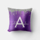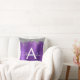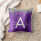 Purple Glitter Brushed Metal Monogram Throw Pillow