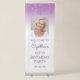 Welcome guests to her 60th birthday party with this chic retractable banner, featuring a sparkly purple faux glitter drip border above her photo on a purple ombre background. Personalize it with her name in purple handwriting script, with her birthday and date below in sans serif font. Easily replace the sample image with your own photo.