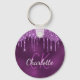 Purple glitter drips monogram initials elegant keychain