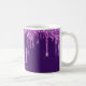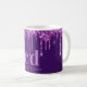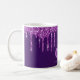 A girly and trendy monogrammed mug. A chic deep purple background decorated with faux glitter drips, paint dripping look. Personalize and add a name and monogram initials. Purple colored letters.