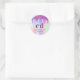 Purple glitter drips pink name holographic classic round sticker