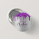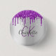 Purple glitter drips silver monogram name button