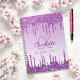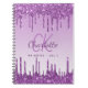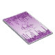 A purple, violet gradient background with deep purple glitter drips, paint dripping look. Personalize and add your monogram initials, a name and a title. The name is written in purple with a modern hand lettered style script. Perfect for business, school, diary, work or personal/family life.