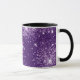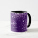 A girly and trendy monogrammed mug. A chic deep purple background decorated with faux glitter drops, dust. Personalize and add your first name, monogram initials and full name. Purple and white colored letters.