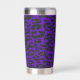 A stylish stainless steel tumbler with a bold purple and black glitter leopard print design. The shimmering black spots stand out against the vibrant purple background, creating a dynamic and fashionable accessory. The tumbler is set against a subtly blurred outdoor backdrop, suggesting it's perfect for adding a pop of color and style to any on-the-go occasion.