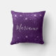 A deep purple background color with faux glitter dust. Personalize and add a name. The name is written in white with a large modern hand lettered style script.