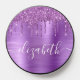 Elegant phone grip that features purple faux glitter drips on a purple faux brushed metallic background. Personalize with your name in a stylish white script with swashes.