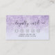 Business loyalty cards featuring a purple glitter effect. The back of the card can be personalized with your logo, website, and social media.