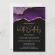 This elegant 60th birthday party invitation features a watercolor image of an agate geode in shades of purple with faux gold highlights. The words "60th Birthday" appear in faux gold glitter in decorative modern handwriting font. Customize it with the name of the honoree in gold colored text and the details in white. The same purple agate image appears on the reverse side.