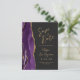 This elegant modern save the date postcard features a purple watercolor agate border trimmed with faux gold glitter. Easily customize the gold-colored modern script and sans serif on a slate black background. On the reverse side, edit the customizable return address and enter your wedding website URL to generate a QR code your guests can scan to learn more about your upcoming event.
