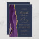 Purple Gold Agate Navy Blue QR Code Wedding Invitation