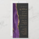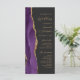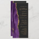 The left-hand edge of this elegant modern wedding program features a purple watercolor agate border trimmed with faux gold glitter. The customizable text combines gold-colored calligraphy script and sans serif fonts on a dark background.