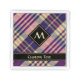 Purple, golden yellow and blue tartan design. Seamless pattern. Custom text and monogram.