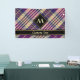 Purple, golden yellow and blue tartan design. Seamless pattern. Custom text and monogram.