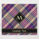 Purple, golden yellow and blue tartan design. Seamless pattern. Custom text and monogram.