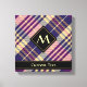 Purple, golden yellow and blue tartan design. Seamless pattern. Custom text and monogram.