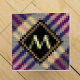 Purple, golden yellow and blue tartan design. Seamless pattern. Custom text and monogram.