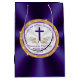 Purple, Gold and White, Christian Gift Bags in 4 Sizes. (Design fits this Medium Purple Gift Bag or choose the Small or Large size. Design does not fit the narrow wine purple and gold gift bag). Great to wrap up pastors gifts, church anniversary gifts for priests, reverends, first lady and christian gift wrap.