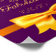 A poster for a 50th birthday. A chic and feminine purple background, decorated with a faux gold bow and ribbon. With the text: 50 and fabulous. Template for her name and a date. Golden letters.