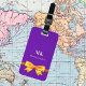 A purple background. Decorated with a faux gold looking bow. Personalize and add your monogram letters and full name on the front. Your contact information on the back.