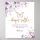 Purple gold wildflowers, butterfly diaper raffle sign.