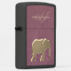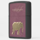Elegant and timeless, this purple Zippo lighter showcases a golden elephant emblem paired with a personalized monogram and name. The soft textured background adds a rich, sophisticated touch. A stylish gift idea for him or her—ideal for birthdays, anniversaries, or anyone who loves luxury and symbolism.