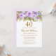 Purple Gold Floral Rose 40th Birthday Invitation