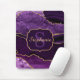 Purple & Gold Glitter Marble Agate Monogram Mouse Pad