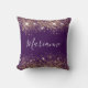 A deep purple background color with faux gold glitter dust. Personalize and add a name. The name is written in white with a large modern hand lettered style script.