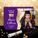 Purple | Gold Graduate Wave Grad Cap Photo Thank You Card