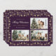 Purple Gold Holly Family 3 Photo Christmas Holiday Card