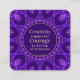 Stand out with these modern square business card templates! Designed for artists, coaches, and creatives who want to make a powerful impression. This set features a unique two-sided design: Side A showcases an inspirational quote set against a vibrant geometric mandala background in colors of fuchsia purple and gold, perfect for making a memorable first impression. Side B offers a clean, fully customizable layout for your contact details, social media handles, QR code and a professional tagline: Limited only by your imagination!