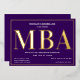 A MBA graduation party invitation with gold foil, white text, and a purple background. Simply add your information, add this invitation to your cart, and celebrate this major accomplishment.
