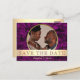 Announce your wedding in bold, modern style with this purple and gold photo save the date postcard. Featuring a rich marble swirl background in deep plum purple with faux gold foil accents and a round photo frame, this postcard design is both elegant and contemporary. The couple’s names and wedding date appear in romantic script and serif fonts, with a coordinated postcard back layout for mailing. Perfect for fall or winter weddings, destination weddings, or glam celebrations. Personalize with your own photo and wedding details.