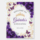 Purple gold Quinceanera welcome foam board sign. Features, script font, gold butterflies, watercolor roses and tiara. Perfect for an elegant princess style glam celebration. Personalize with your own details.