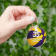 This cool basketball themed keychain features the image of a realistic basketball with alternating purple and gold recolored panels - easily customize with school name, mascot name and player name & jersey number - by katz_d_zynes
