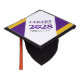 Colleges, universities, high schools, and institutes of higher learning can add sophistication to graduation ceremonies with this modern, contemporary motarboard, which features elegant lettering set on purple, gold, and white backgrounds. Customize with name of school/college/university and academic logo/motto/seal. Colors and font types can be modified as desired.