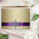 Purple Gold Christmas A7 Envelope with printed satin ribbon and printed diamond jewel in the shape of a snowflake. Printed on white paper, this photo of a metallic gold background and 3D effect of a snowflake jewel on a purple satin ribbon allow for the look of shiny gold envelope without the glossy texture so that it is easy to hand write your guests' addresses on the front. Designed to fit the Purple, Gold Merry Christmas Card in our store. Design by Elke Clarke for Monogram Gallery. Need help please contact luxuryweddinginvitations@gmail.com