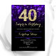 Plain white envelopes are included with paper invitations and will come to fit the invitation size you select. If you don’t need the envelopes, you may choose to not receive them by selecting the dropdown below "Envelopes" and choosing "None." If you’d like to have a design on your envelopes, you can browse all of these available envelopes to find the design that complements your Purple Gold Surprise 40th Birthday Invitation.