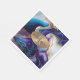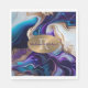 These elegant purple, gold and teal wedding napkins are personalized with a monogram initial and the names of the bride and groom.