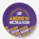 Purple & Gold Yellow Personalized Graduation Paper Plates - Half Repeating Congratulations