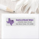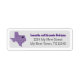 Let them know where you're going with this classy label. Features the state of Texas in a grid pattern with a heart you can move to show where your new house is. Comes in burnt orange, maroon, red, state flag blue, green, purple, orange, black and yellow - most based on state school colors. Matching products available.