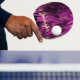 Ping pong paddle with trendy colors and design. Girly and feminine colors. Dramatic goth inspired shades of purple, pink and black colors in waves and swirls making an modern abstract pattern. Personalize with Your name on front, light yellow colored letters.