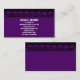 Purple Gothic Skulls Business Card. A strip of black on purple faded skulls accents this classically Goth business card. All elements are printed on our high quality products, they do not include any real gold, jewels, embossing, or other textile elements. All designs are copyright Tabitha Jones all rights reserved.