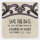 Elegant and chic Gothic Swirls Save the Date Stickers featuring a vintage faux textured beige background and swirl flourish borders in purple. This antique looking design is perfect for announcing your gothic or vintage wedding. Easy to customize, simply add your wedding details in the text fields provided. Click "Customize It" to find more personalization options.