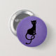 Elegant button with a beautiful illustration of a gracious evil black cat with glowing eyes on a night watch in the dark purple haze.